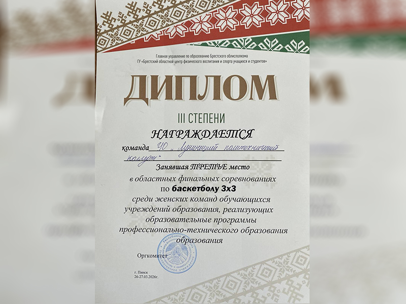 Команда девушек нашего колледжа достойно представила учебное заведение на областных соревнованиях по баскетболу 3×3, состоявшихся в Пинске, заняв почётное третье место