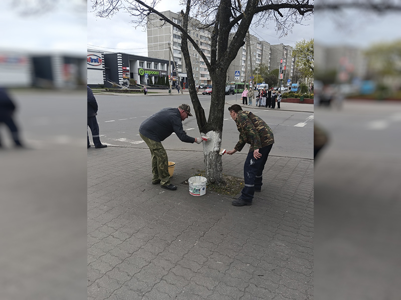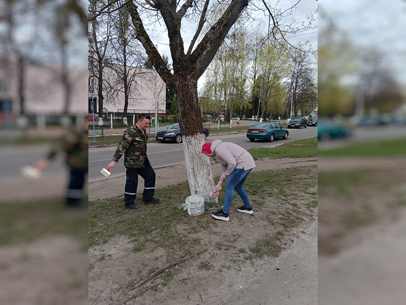 В рамках республиканского субботника работники нашего колледжа приняли активное участие в побелке деревьев на закрепленной за учреждением образования территории