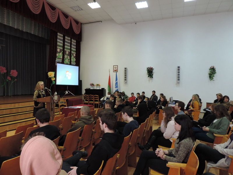 В актовом зале колледжа состоялась встреча с психологом ГУ «Лунинецкий РайЦГиЭ» Дмитриевой С.И., врачом-психотерапевтом УЗ «Лунинецкой ЦРБ» Круговец Т.А.