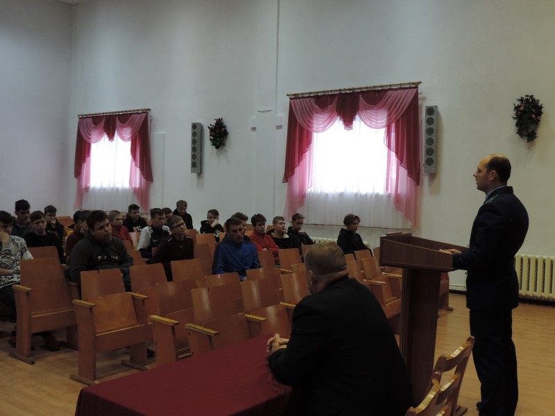 7 декабря состоялась встреча обучающихся групп №15 и №3 ТУ с прокурором Лунинецкого района Юрием Прокопчуком.