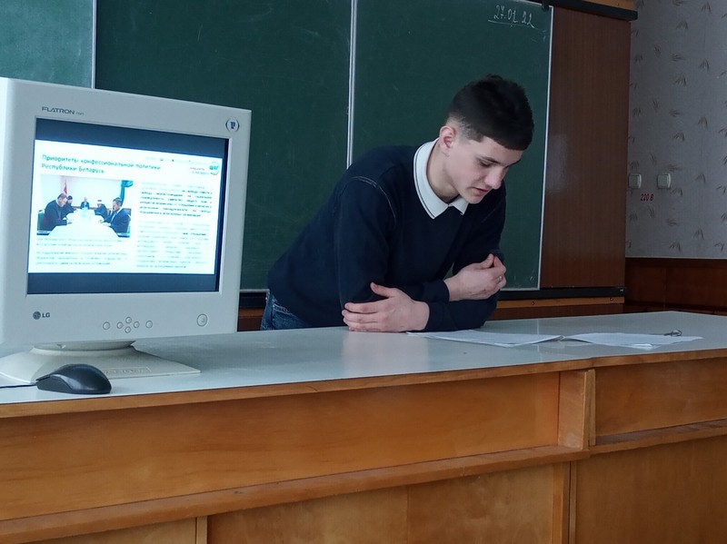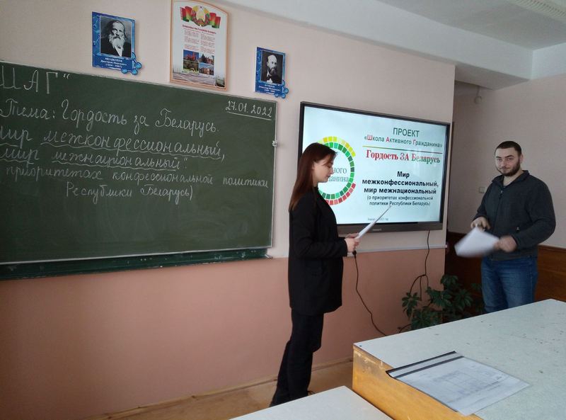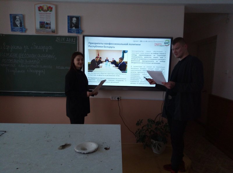 26.01.2022 в группах прошли информационные часы по теме «Гордость за Беларусь. Мир межконфессиональный, мир межнациональный» (о приоритетах конфессиональной политики Республики Беларусь).