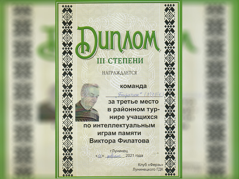 Традиционно на базе ГУО «Средняя школа №2 г.Лунинца» после зимних каникул интеллектуалы – представители средних школ города и района- собираются на районном турнире учащихся по интеллектуальным играм памяти Виктора Филатова, журналиста, основателя этого турнира в нашем городе.